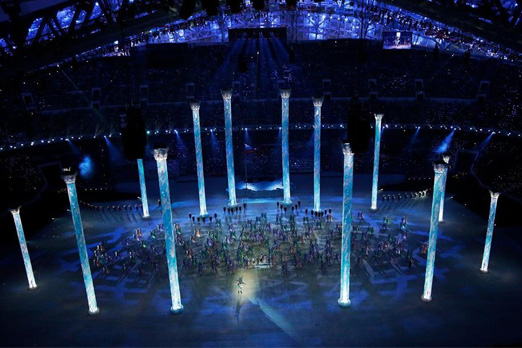 洲明科技攜手子公司雷迪奧為索契冬奧會特別定制216根舞臺柱形屏