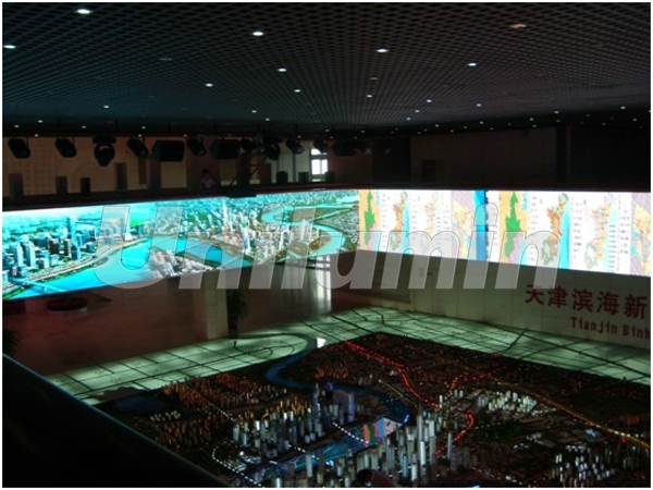 據(jù)了解,金融中心一樓大廳內(nèi)內(nèi)部結(jié)構(gòu)為一樓、二樓中心部分相通,可以站在二樓俯瞰一樓近300平方米的于家堡金融區(qū)整體沙盤模型,而此次LED顯示屏的位置則是二樓走廊外四面的墻體,主要用于播放于家堡的歷史發(fā)展足跡及未來(lái)規(guī)劃的視頻,觀眾在觀看于家堡金融區(qū)整體沙盤模型的同時(shí),稍微抬頭就能觀看相關(guān)視頻,了解到于家堡的過(guò)去、現(xiàn)在、未來(lái)。