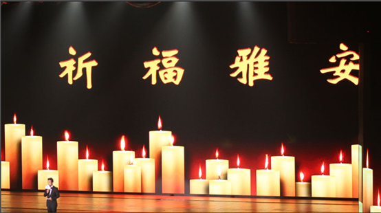 相比于到場明星的光輝璀璨,電影節閉幕式的舞臺亮化同樣是炫耀奪目,在儀式一開始,大型歌舞開場表演《追夢北京》為雅安地震災區祈福,為雅安加油,同時結合舞臺亮化的LED顯示屏也給了觀眾美輪美奐的視覺享受,引人入勝。舞臺上的LED顯示屏播放的畫面融為一體,跟隨音樂呈現的是一片平靜的海洋,月兒高掛,懸掛的LED球形屏如同星空的明珠星光熠熠,海洋生物們翩翩起舞的祥和場景,突然之間,風云變幻,電閃雷鳴,海面也變得洶涌波濤,而追夢少年們在飄搖的船帆上穿過風雨,最終迎來了雨后天晴,到達夢想彼岸,LED顯示屏上明媚的陽光照射著中國大地,顯得生機勃勃,春意盎然,一幅幅中國山川錦繡畫卷鋪開在大家眼前,從長城到故宮,畫面恢弘磅礴,隨著表演的結束,,此次盛會的終極大獎“天壇獎”獎杯隨后也閃亮呈現。整個表演預示著雅安災區在災難過后,終究會回歸幸福,在困境中像太陽一樣冉冉升起,而中國也會更強大起來。