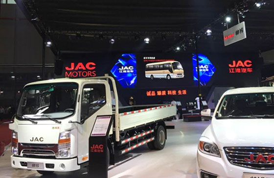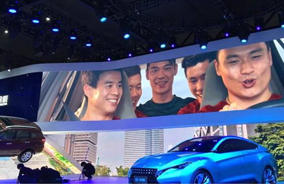 正處于轉(zhuǎn)型升級(jí)突圍期的國(guó)產(chǎn)品牌汽車在此次車展并不示弱。國(guó)產(chǎn)福田戴姆勒汽車,采取簡(jiǎn)單的舞臺(tái)設(shè)計(jì)配搭超大的洲明租賃屏R3為背景,利用具有超強(qiáng)科技感進(jìn)行超高清滾動(dòng)聯(lián)播的細(xì)節(jié)圖片、宣傳片等顯示技術(shù),把國(guó)產(chǎn)新品推及登峰造極境界。