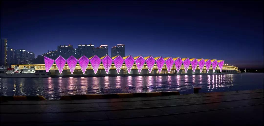 郵輪母港作為活動核心區域,是項目的重中之重,最終使用大功率染色燈方案,成功地渲染出設計效果。