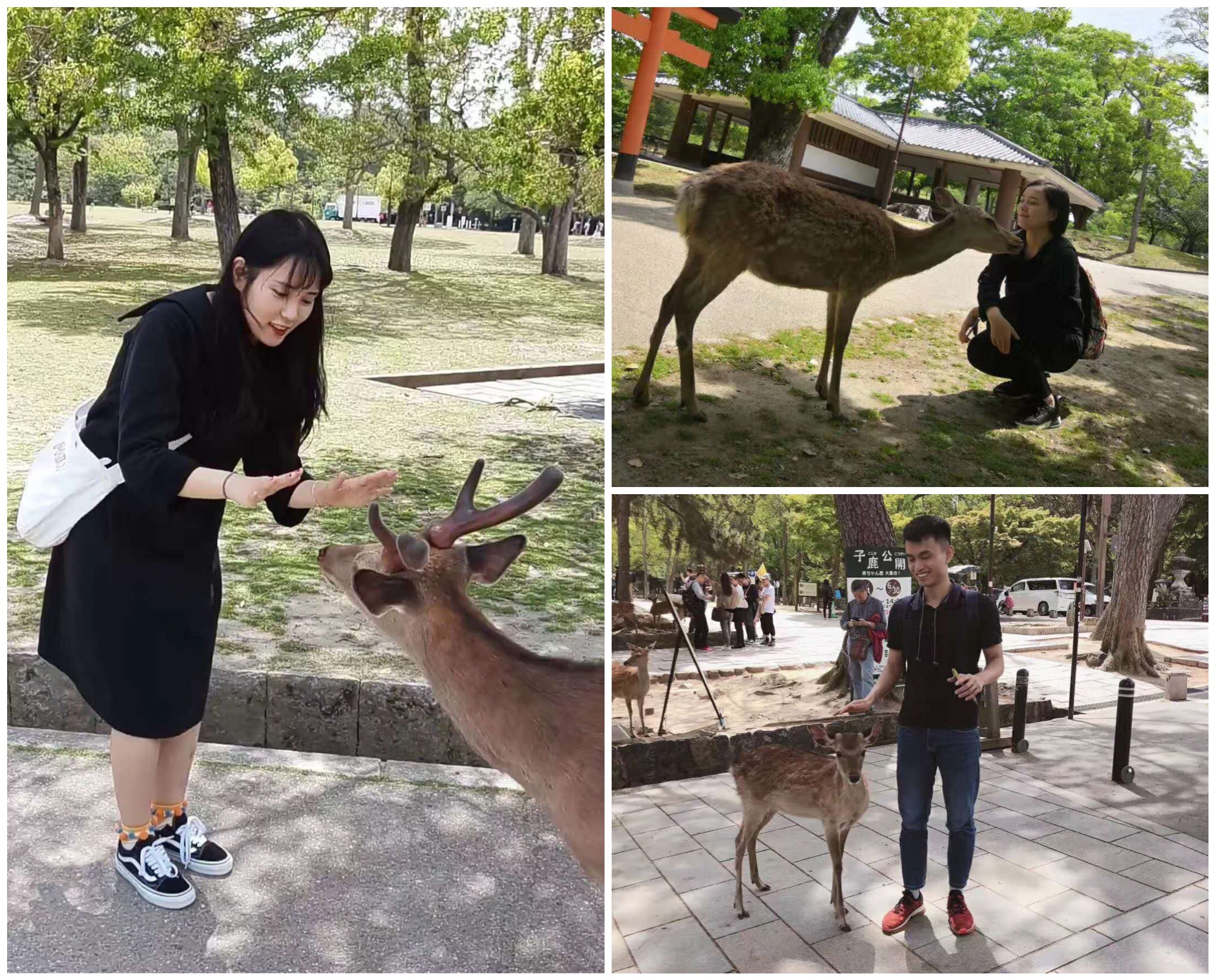 除了奈良公園,在若草山、東大寺等很多景區也遍布著鹿的痕跡。洲明的小伙伴們這次在奈良與小鹿們也親密接觸了一回!這些小可愛見到游人還會鞠躬的哦,是不是很懂禮貌~但其實是為了向游客要鹿餅來吃呢