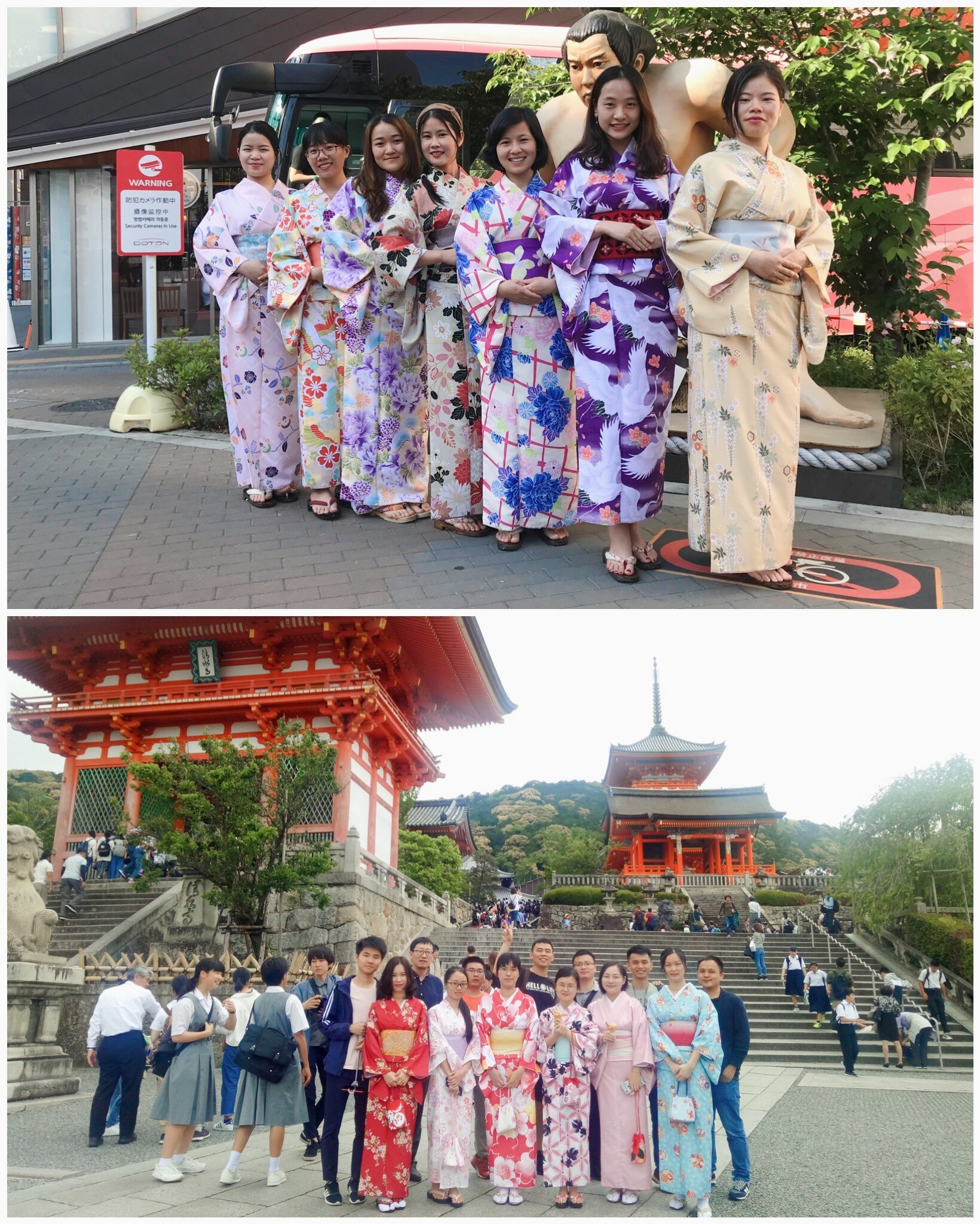 來到日本怎么能不體驗一下傳統的日式和服呢,我們的日本行程也特地為各位小伙伴安排了和服變身體驗。服裝上雅致的圖紋源自日本民族對山水的欣賞和對風土的眷戀,更是對人本精神與情境的細膩感受。來看看我們洲明小姐姐們穿上和服是什么樣的吧