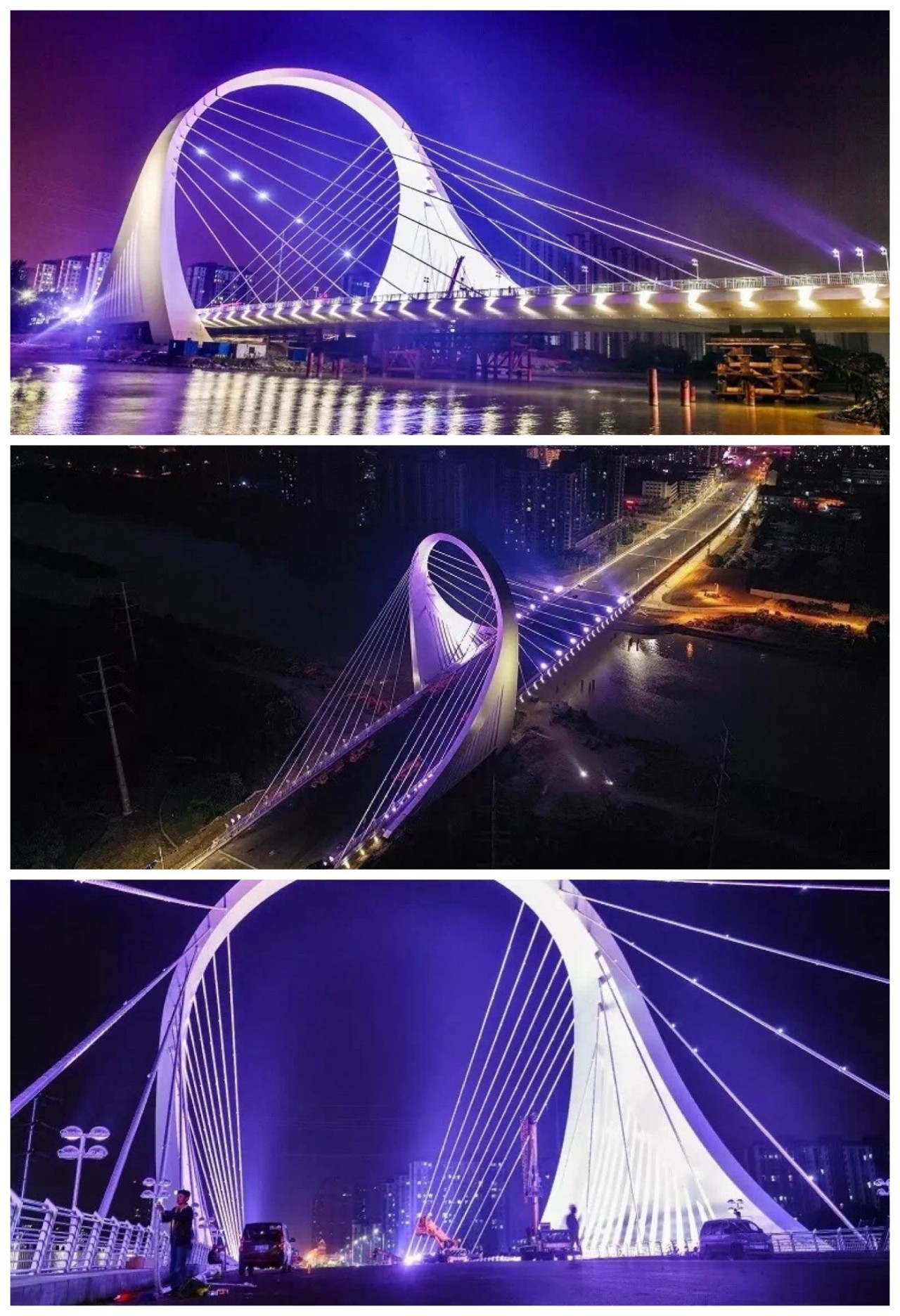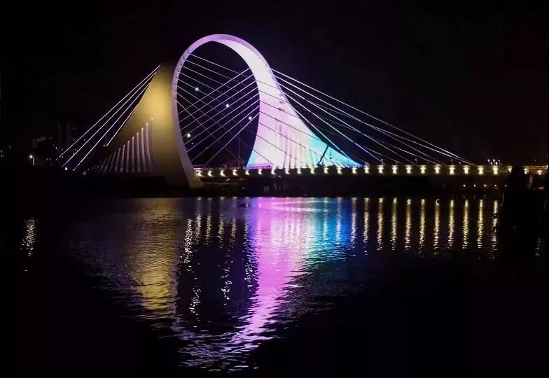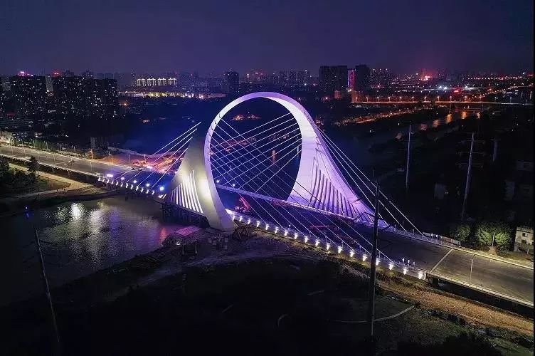淮安運河大橋的建造運用了多類新工藝和新技術,獨特的全三維造型設計更是賦予了這座橋靈動的生命。每當夜幕降臨,霓虹般的淮安運河大橋,在夜色中熠熠發光,成為淮安人心中的新地標!