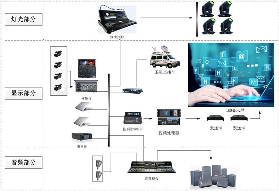 系統(tǒng)兼容VGA、DVI、HDMI、SDI等各種視頻信號(hào),同一顯示系統(tǒng)能夠顯示視頻圖像信號(hào)、計(jì)算機(jī)信號(hào)、網(wǎng)絡(luò)視頻流媒體信號(hào)、有線電視信號(hào)等多種視頻和數(shù)據(jù)信息,并支持SDI、CVBS等信號(hào)輸出,實(shí)現(xiàn)信號(hào)與導(dǎo)播車(chē)或衛(wèi)星直播車(chē)的無(wú)縫融合,保障視頻信號(hào)的高兼容性和顯示性。在現(xiàn)場(chǎng)訪談環(huán)節(jié)中,也支持字幕處理、配音、文稿編輯及播出畫(huà)面插播等操作。