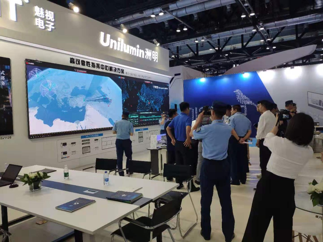 展會現場,洲明搭建的模擬指揮中心場景成為展會上的一道靚麗風景。整個平臺綜合了LED大屏拼接、可視化管理、分布式坐席協作、UCM控制管理、光網雙鏈路熱備份等諸多前沿技術,將分散在不同部門和不同行業的公共數據匯聚到統一的指揮中心大屏幕,打破了信息孤島、空間地域限制,實現了信息的互聯互通、簡單高效的人機交互以及更穩定的系統運行,充分滿足指揮、調度、分析、決策等需要。