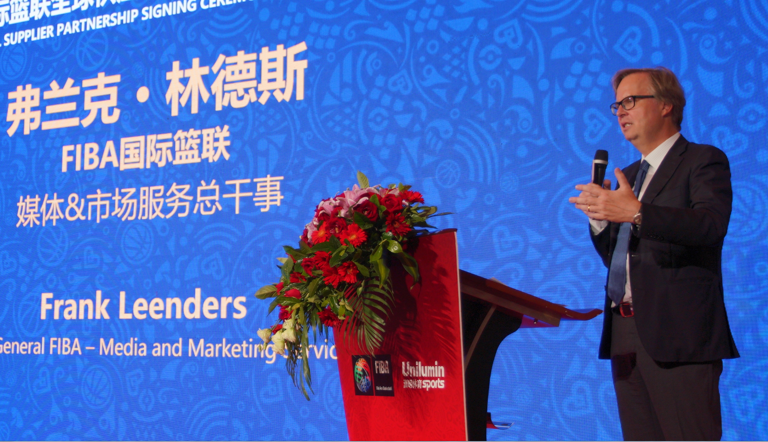 國際籃聯媒體與市場服務總干事弗蘭克·林德斯發表致辭