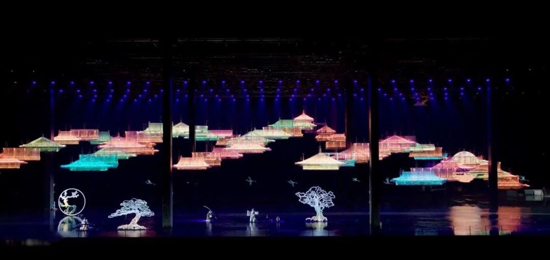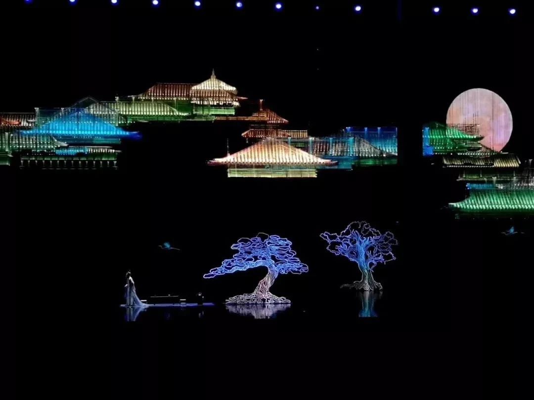 設計立意前期,張藝謀導演摒棄了傳統舞美以顯示大屏為主的舞臺設計方案,幾經易稿,刪繁就簡,最終確定把洲明薔薇格柵屏“超級圓月”作為載體,融入三峽舞臺的山水之間。
