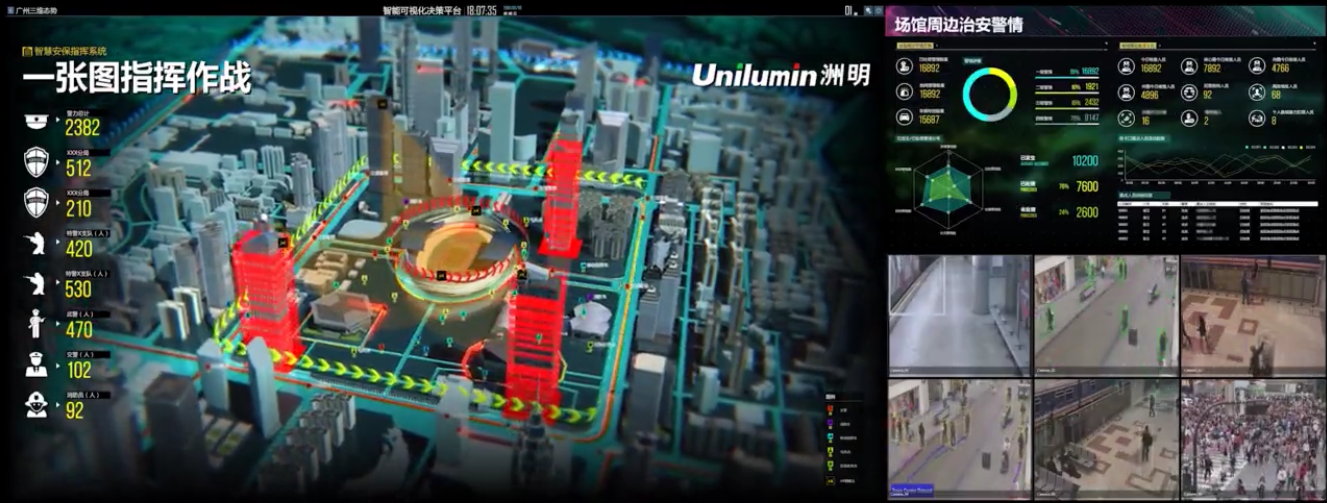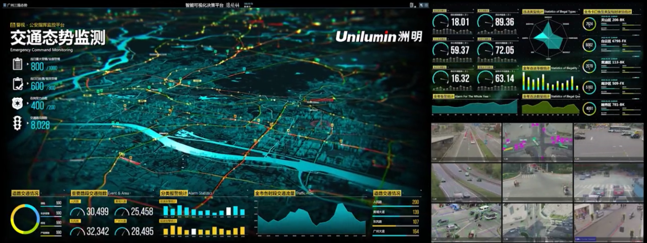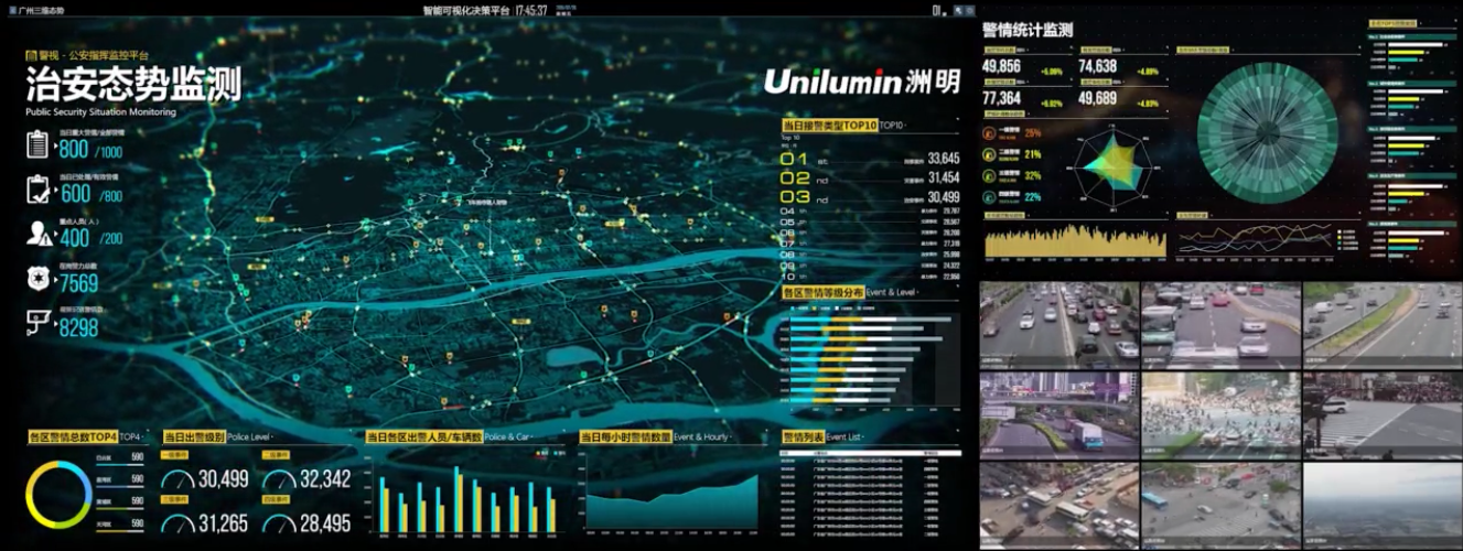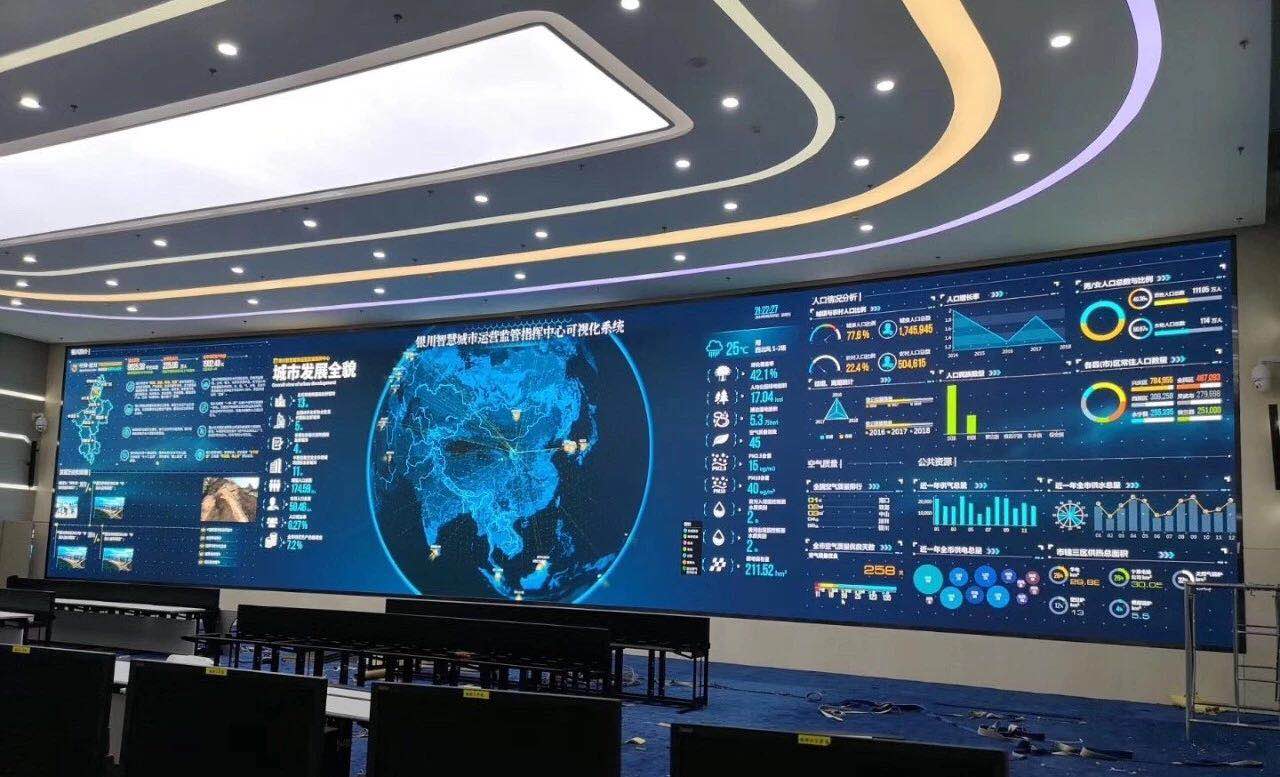 洲明為銀川市城市運營管理指揮中心配置了UHP1.2高清顯示大屏顯示與控制系統,總面積達133.9平米,無縫拼接、多屏圖像處理、信號切換等技術的運用,能夠實現指揮中心多信號的接入顯示與靈活切換;搭配智慧城市高分可視化軟件平臺和大數據分析技術,能夠將城市運行的多項關鍵指標直觀、實時的呈現出來,充分實現全覆蓋、全過程、全天候的城市運營管理。