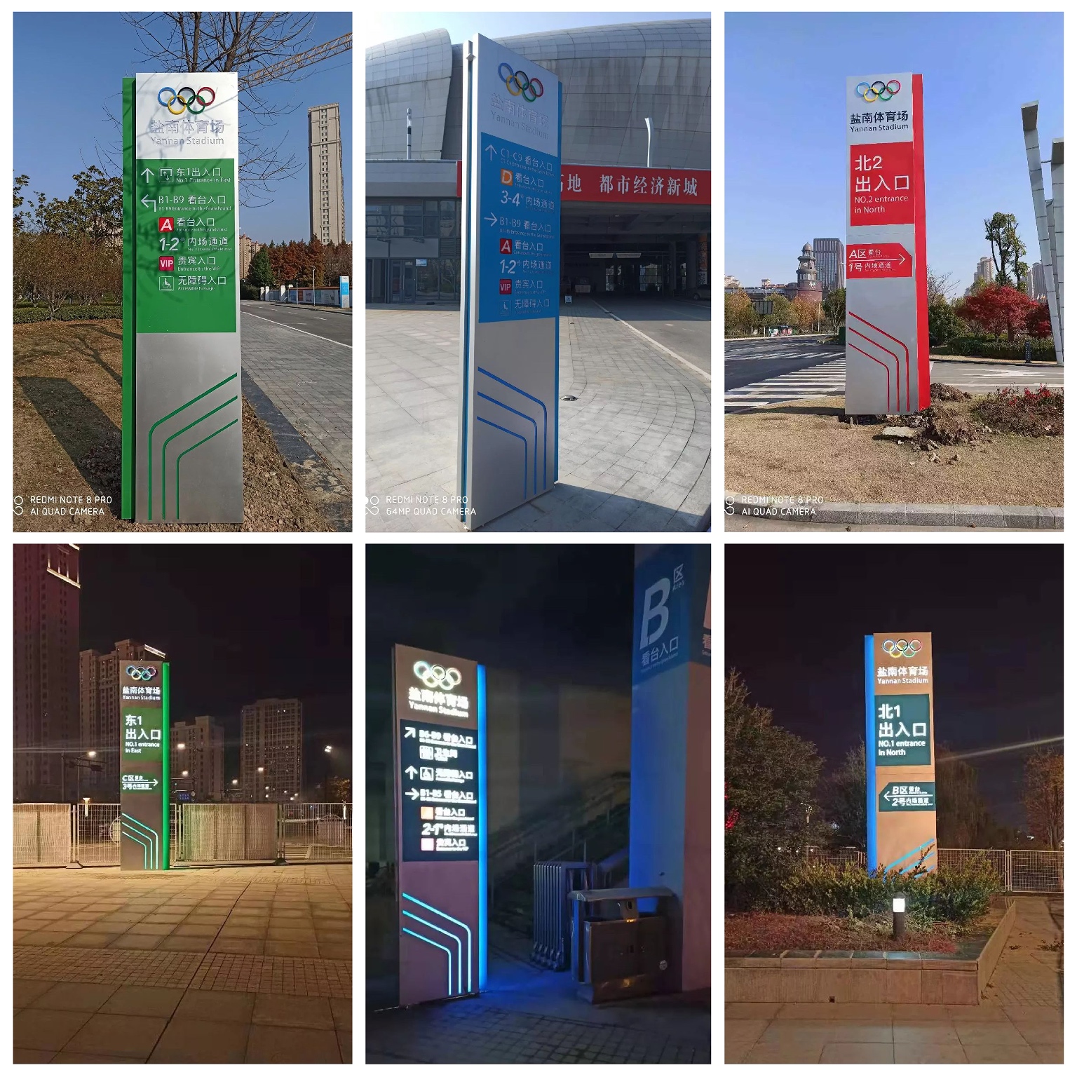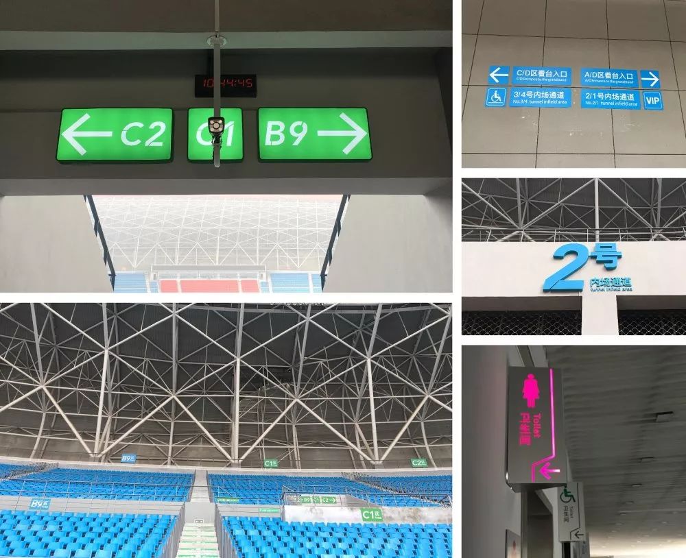 鹽城體育中心標識導向系統的深化設計遵循人性化的設計理念,充分考慮觀眾的路線習慣,能夠快速的引導方向。標識產品整體造型簡約又有內涵,在滿足功能的基礎上充分考慮鹽城體育中心的品牌形象、文化、地理環境特點,并與場館建筑及裝修風格相協調,提升觀眾的視覺感受,達到美觀的效果。