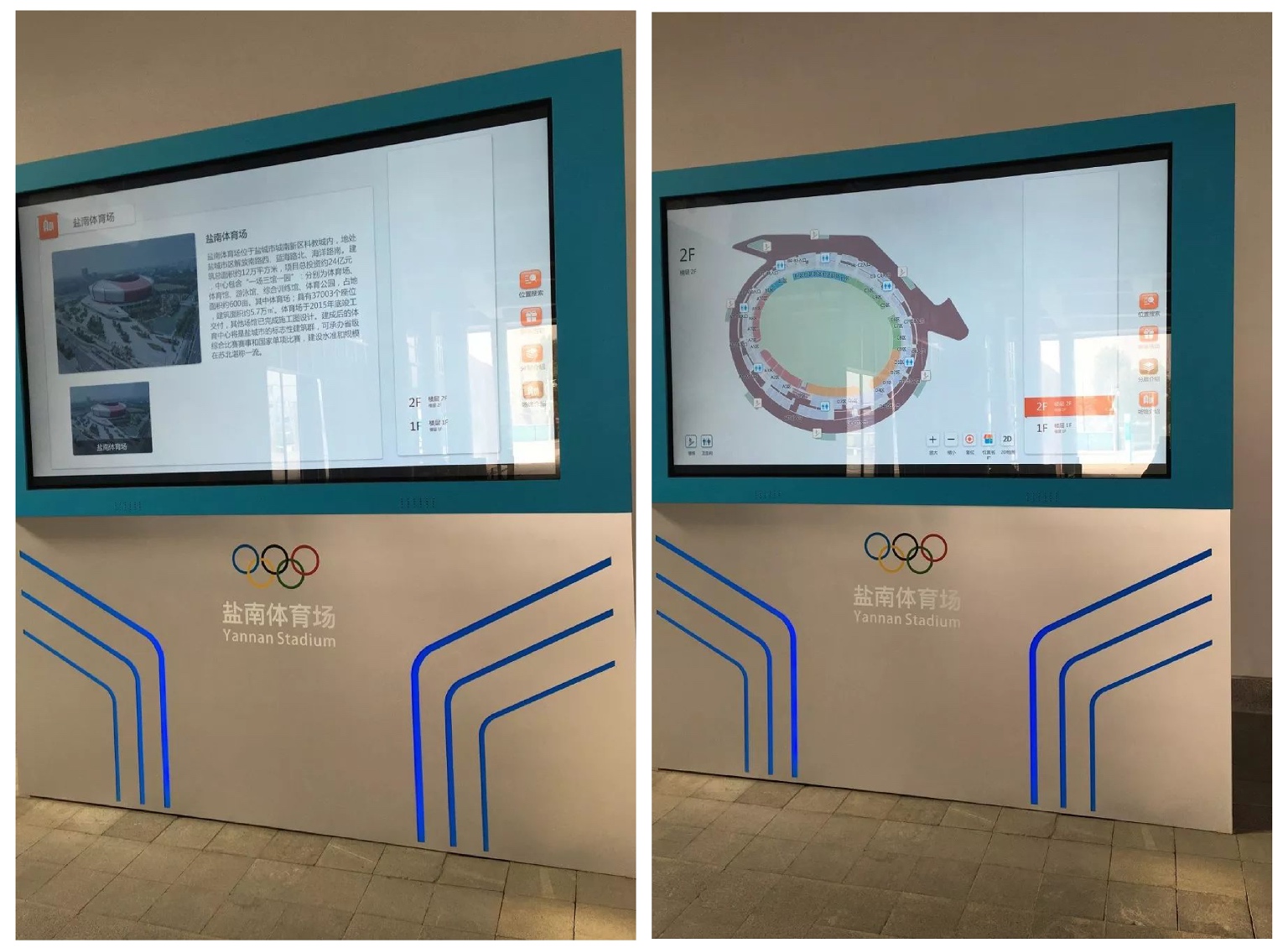 體育場外側入口環道增設LCD智能導航互動屏,系統展示館內位置最佳路線導航,確保觀眾分流入場和疏散立場的安全有序。