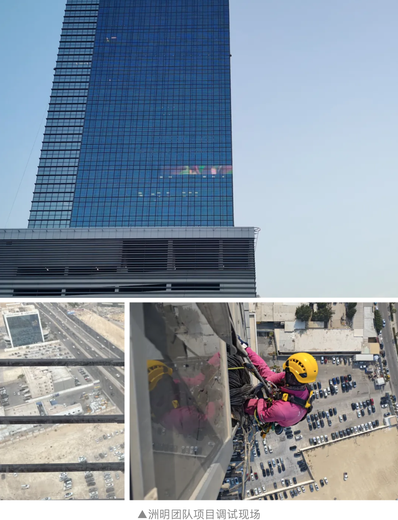 在達曼,耀眼的陽光是一種常態,如何讓屏幕在高亮環境下依然“在線”?洲明科技為此項目定制的LED玻璃幕墻以35cd行業最強的單點亮度脫穎而出,畫面在強光下依舊清晰可見,晝夜無懼。屏體的IP67高防護等級,確保設備在高溫、風沙等各種環境下的穩定性和耐久性,為客戶解決后顧之憂,產品壽命更長。同時,屏幕每平米僅46W的超低功耗,不僅有效降低客戶的長期運營成本,還滿足沙特智慧城市建設對可持續發展的高要求。