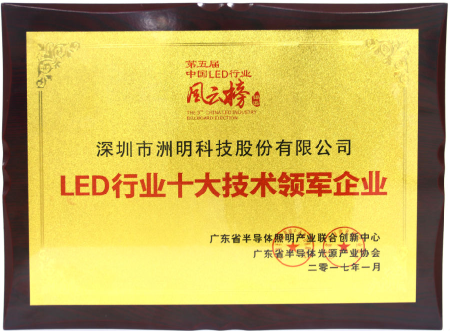 多次引領(lǐng)技術(shù)潮流,洲明科技榮獲LED行業(yè)十大技術(shù)領(lǐng)軍企業(yè)