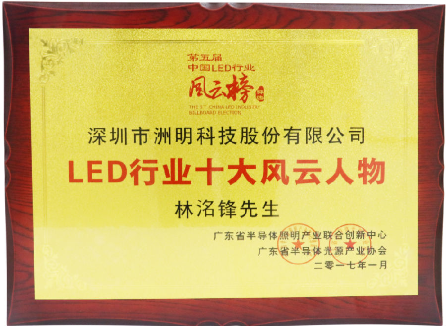 洲明科技董事長(zhǎng)林洺鋒先生榮獲LED行業(yè)十大風(fēng)云人物