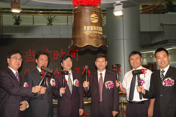 七年艱苦創業,期待與夢想終成現實。2011年6月22日,隨著開市寶鐘的敲響,深圳市洲明科技股份有限公司首次公開發行股票并于深交所創業板正式掛牌上市!股票代碼:300232,簡稱:洲明科技,此次股票發行價18.57元/股,發行2000萬股,發行后總股本約7772萬股。