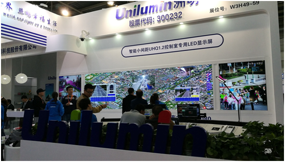 安防系統的打造,不僅需要優質的大屏拼接產品,更需要先進的整體解決方案。為了讓用戶親眼目睹和體驗“智能化、模塊化”技術在智慧安防領域的全新應用,洲明科技在展會現場利用智能小間距LED顯示屏UHQ1.2,混搭4個55吋的LCD液晶顯示墻,打造的一個安防指揮調度顯控平臺,成為本次展會的一道亮點。