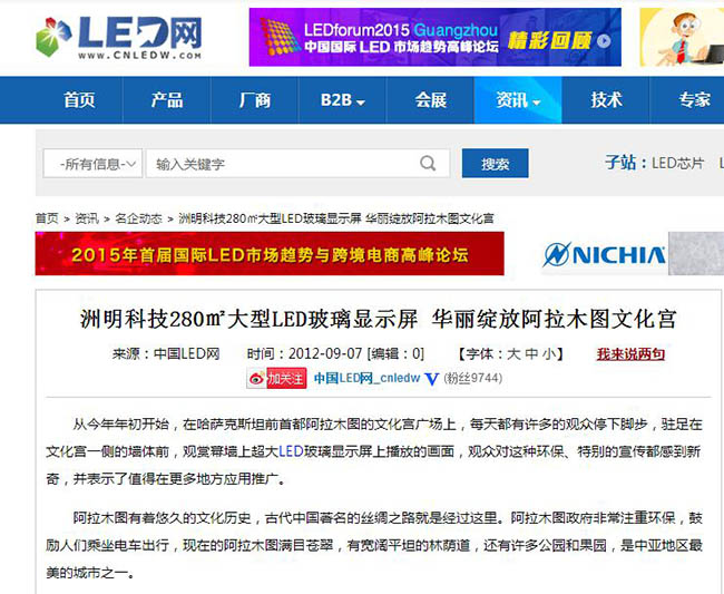 從今年年初開始,在哈薩克斯坦前首都阿拉木圖的文化宮廣場上,每天都有許多的觀眾停下腳步,駐足在文化宮一側(cè)的墻體前,觀賞幕墻上超大LED玻璃顯示屏上播放的畫面,觀眾對這種環(huán)保、特別的宣傳都感到新奇,并表示了值得在更多地方應(yīng)用推廣。