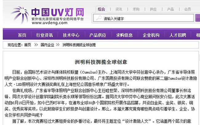深圳市洲明科技股份有限公司作為本次競賽最大的贊助方,其董事長林洺鋒先生在頒獎典禮現(xiàn)場接受媒體記者采訪時表示,今年是第二屆Cumulus“設(shè)計激勵人文”LED照明應(yīng)用設(shè)計大賽,也是洲明科技第二次贊助,洲明科技希望通過支持此類設(shè)計大賽,來激發(fā)更多的靈感和創(chuàng)意。林洺鋒表示,年輕一代的想法非常有創(chuàng)意,作為LED照明企業(yè),通過產(chǎn)學(xué)研的結(jié)合,加深和普及消費者對LED照明的認識和理解,同時也會吸納更多的創(chuàng)意想法融入到產(chǎn)品研發(fā)生產(chǎn)中,讓LED照明產(chǎn)品的創(chuàng)意與實用性更好地結(jié)合起來。