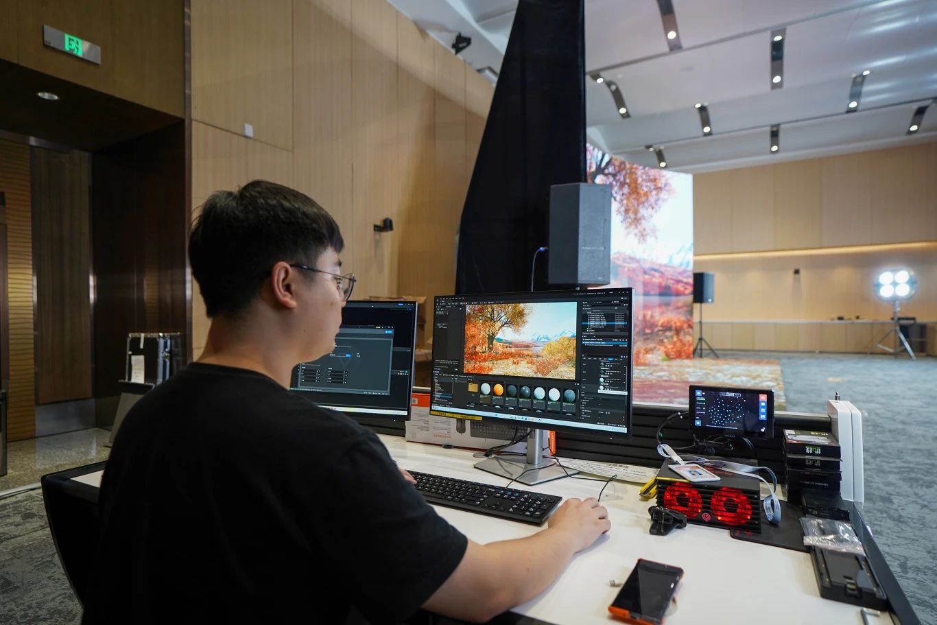 現(xiàn)場(chǎng)引人注目的還有智能燈光矩陣系統(tǒng),通過AI算法自動(dòng)匹配場(chǎng)景色溫。尖端硬件的有機(jī)整合,讓XR拍攝平臺(tái)成為連接物理與數(shù)字世界的科技奇點(diǎn)。